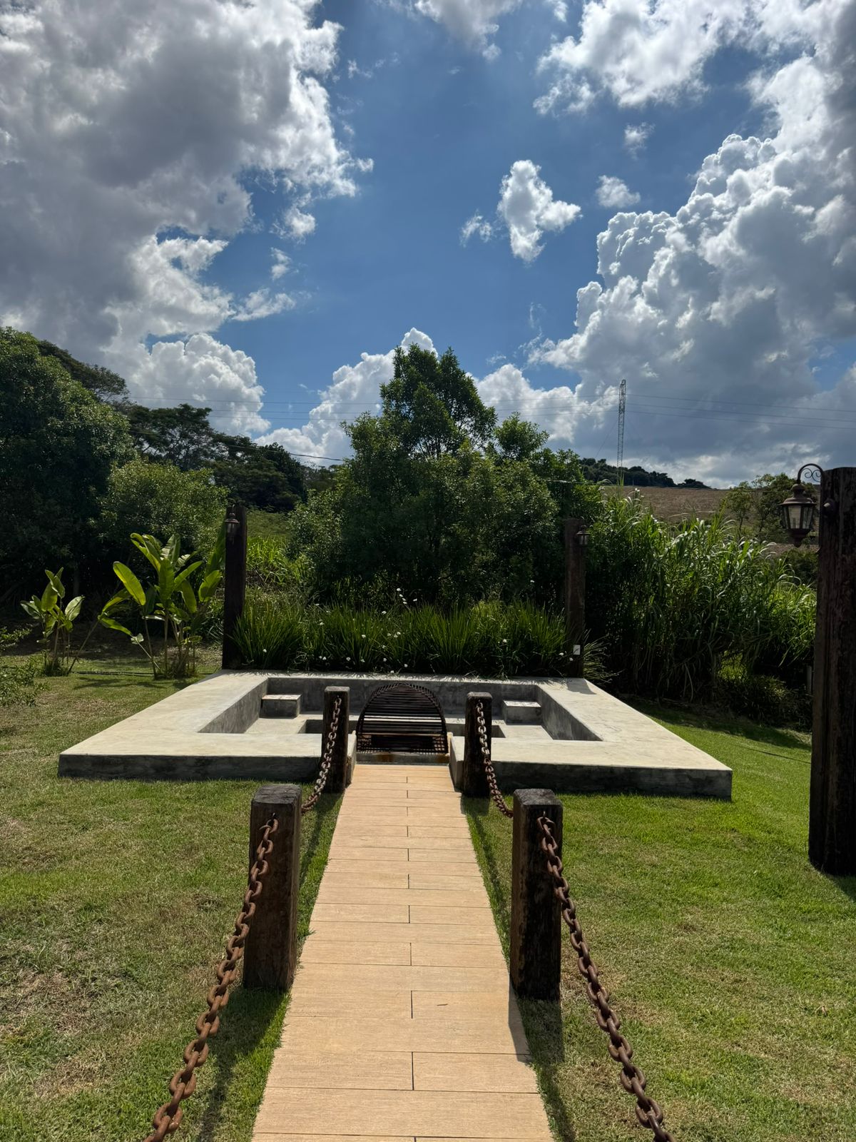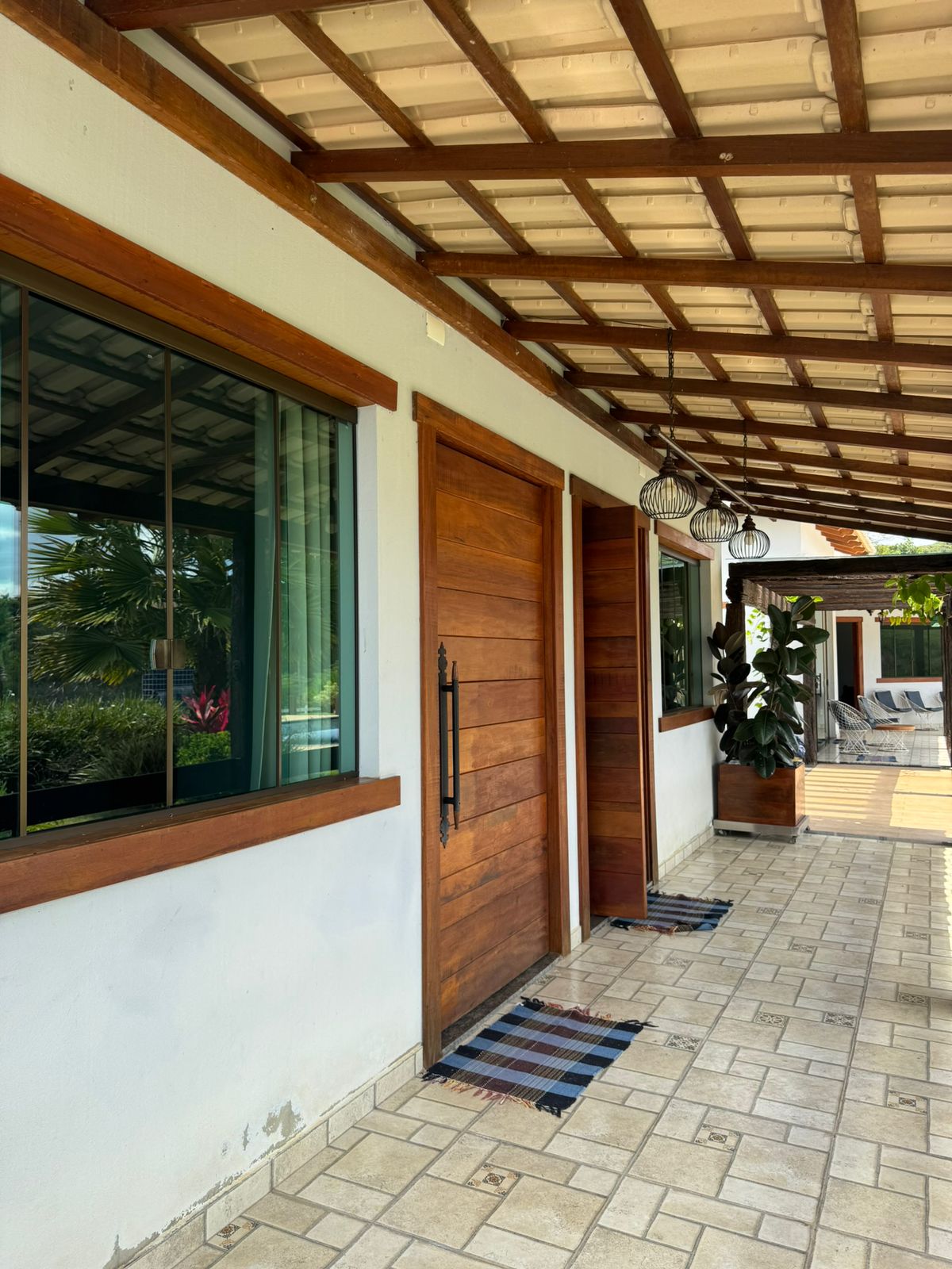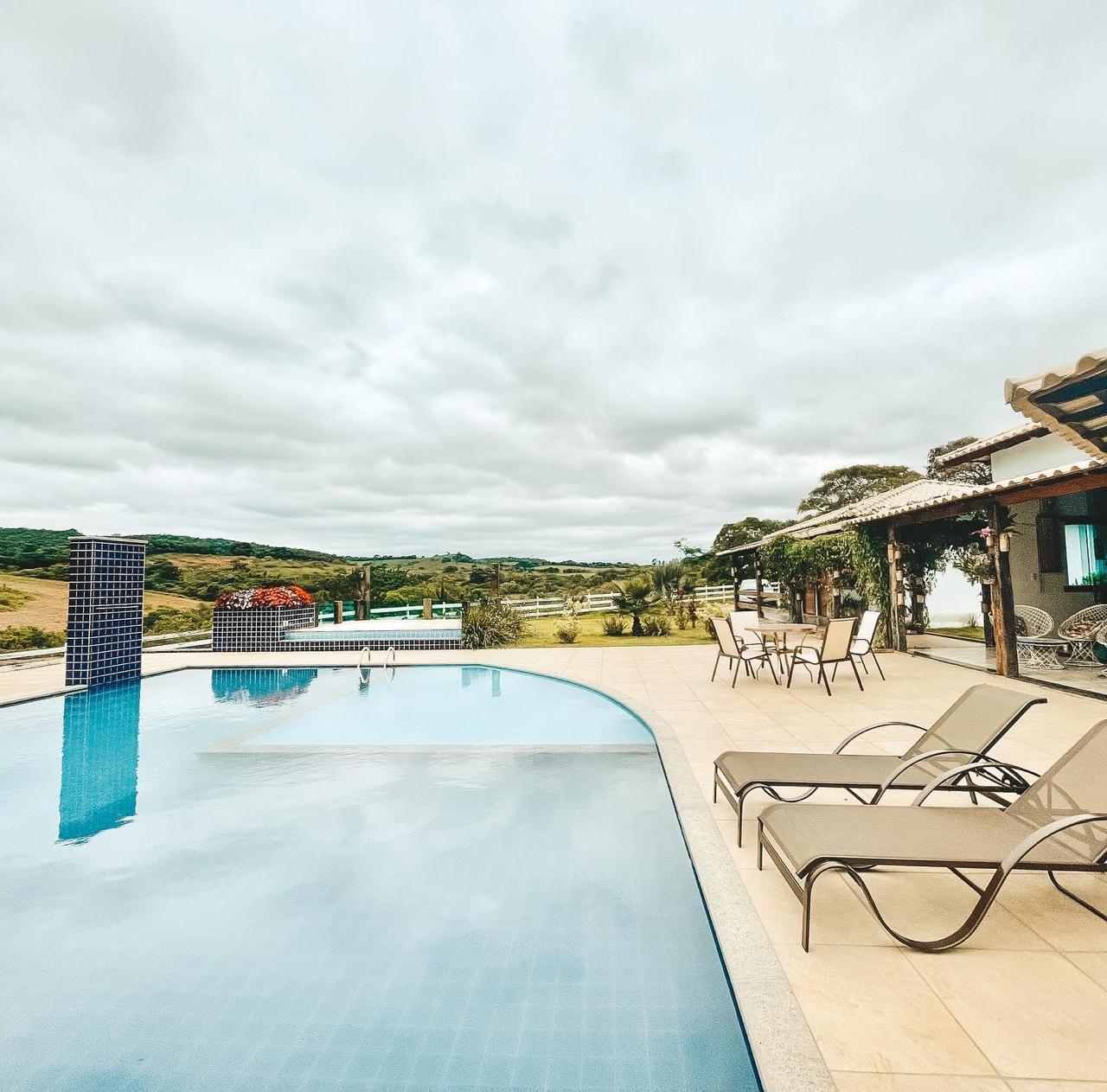 Possui 5 quartos amplos, e uma acomodação individual para auxiliares ou babás, sendo 3 suítes, e acomoda até 20 pessoas em cama. Amplo espaço gourmet, área de lazer com piscina e ofurô, lago privativo para pesca e contemplação, lareira externa, e muitas e muitas flores.