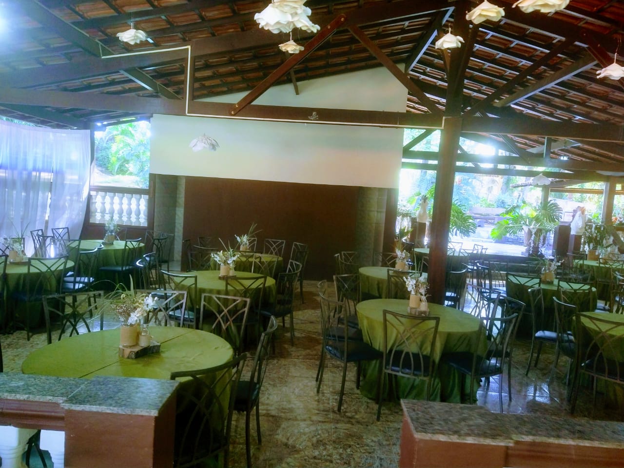 Estacionamento para 16 carros um salão para familiares e amigos para um final de semana feriado e para evento capacidade 300 pessoas e área externa 150pessoas total para evento 450 pessoas com 2 áreas de cozinha bebedouro industrial 1 freezer 3 geladeiras 2 fogões industrial banheiro masculino e feminino etc.