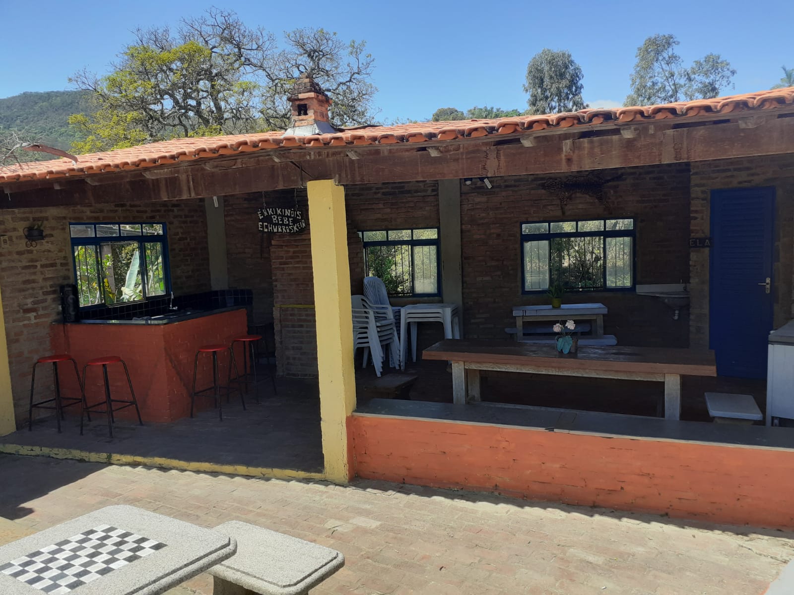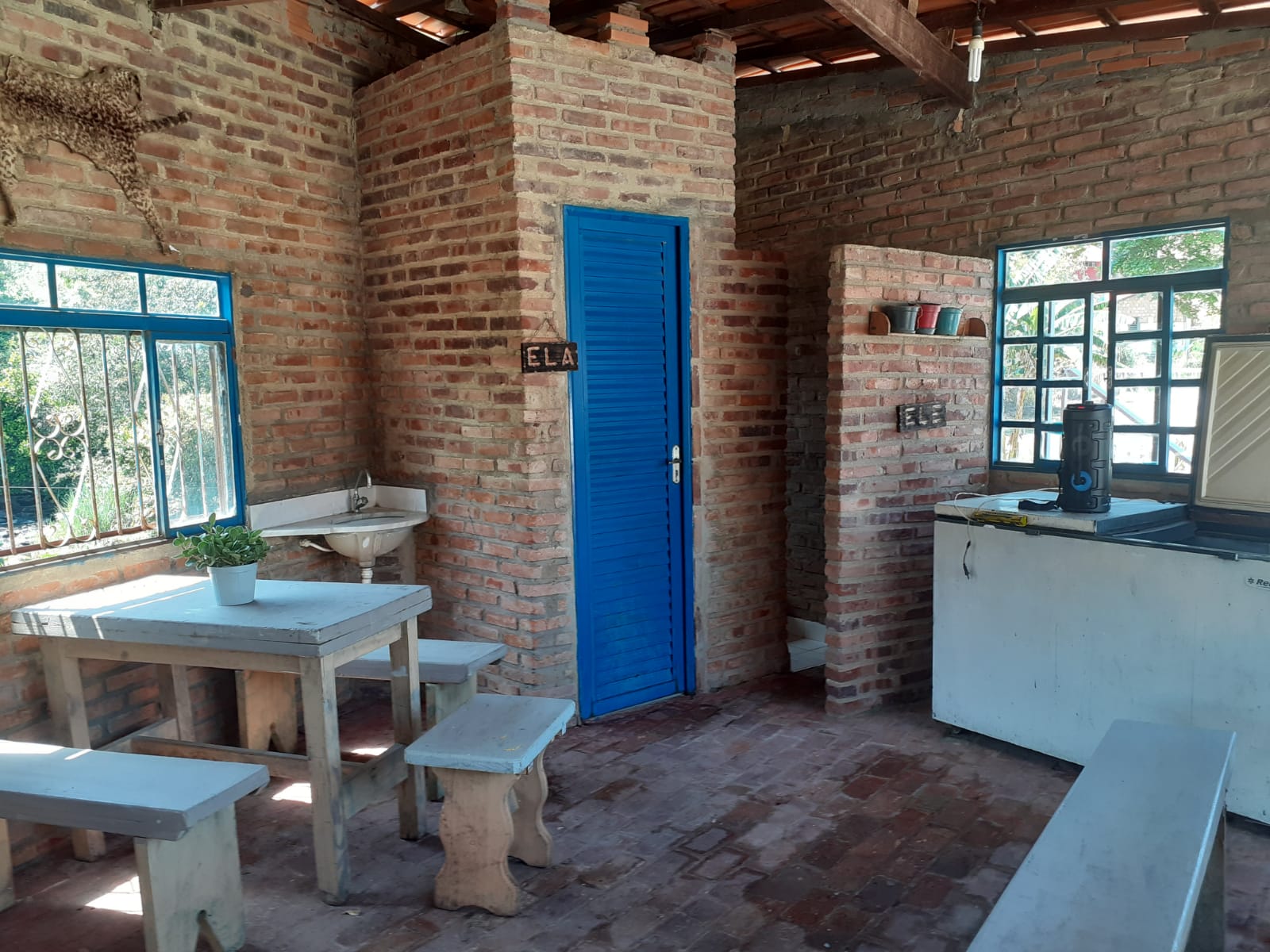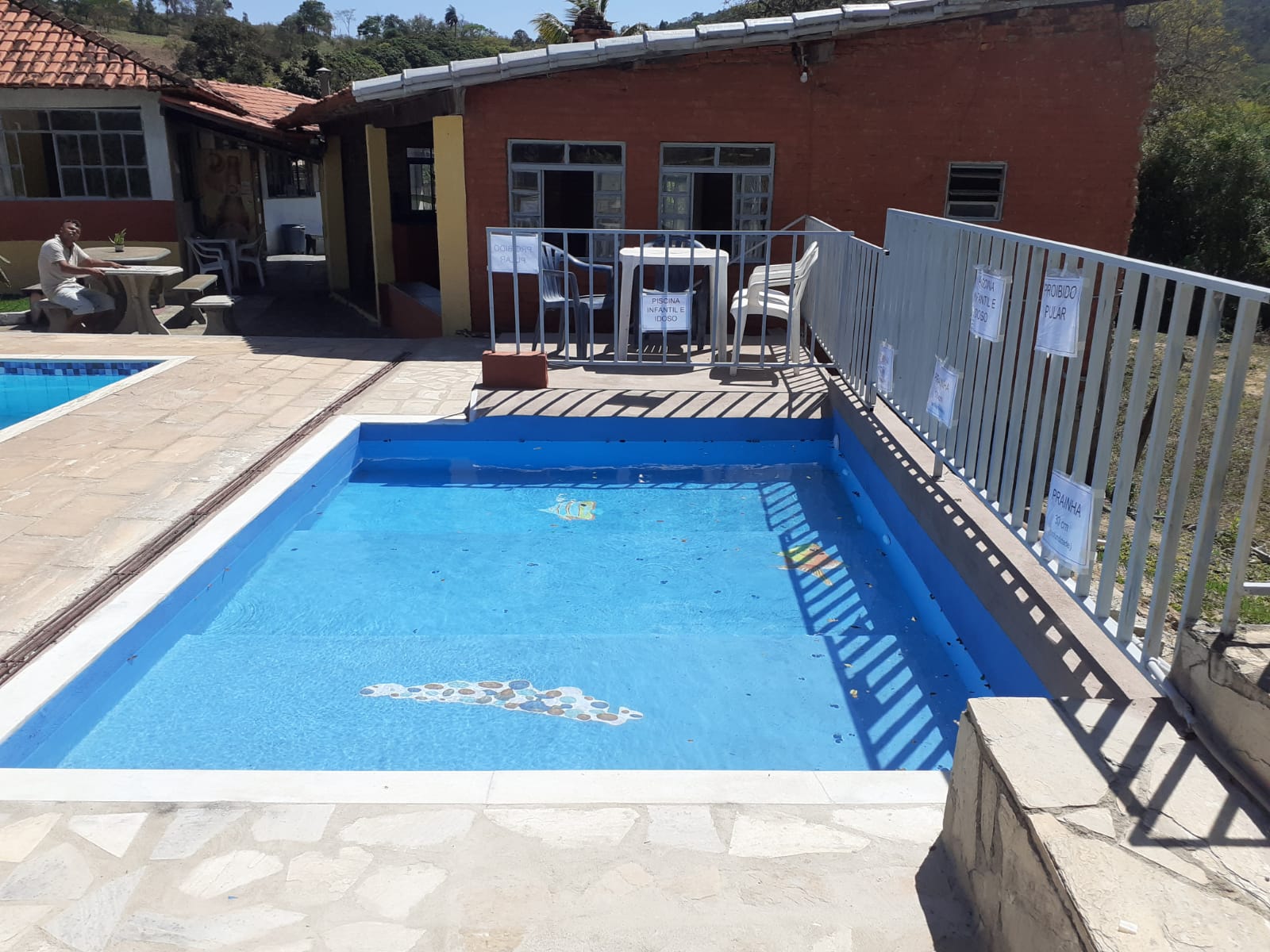 Par até 25 pessoas, quartos suítes, cozinha ampla, área gourmet com churrasqueira, danceteria,quadra ,piscina adulto e infantil, rio, acesso asfalto e calçamento.