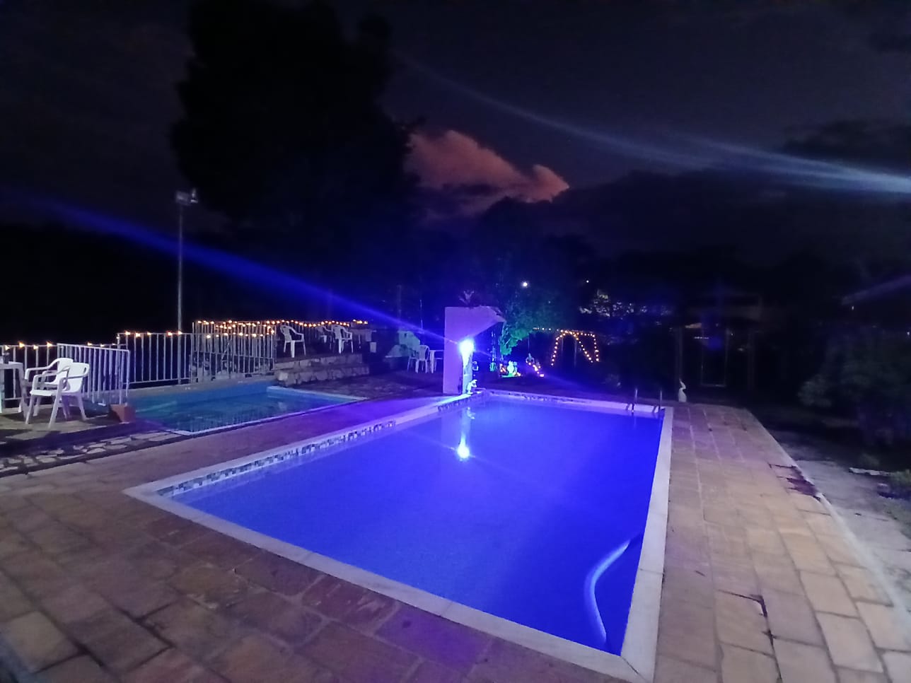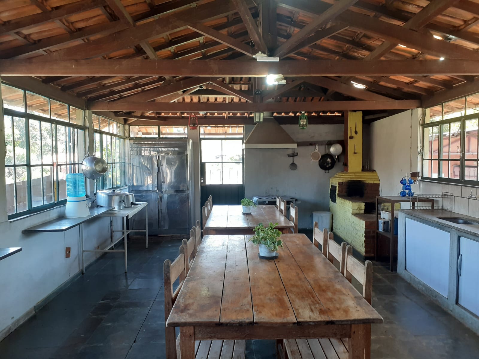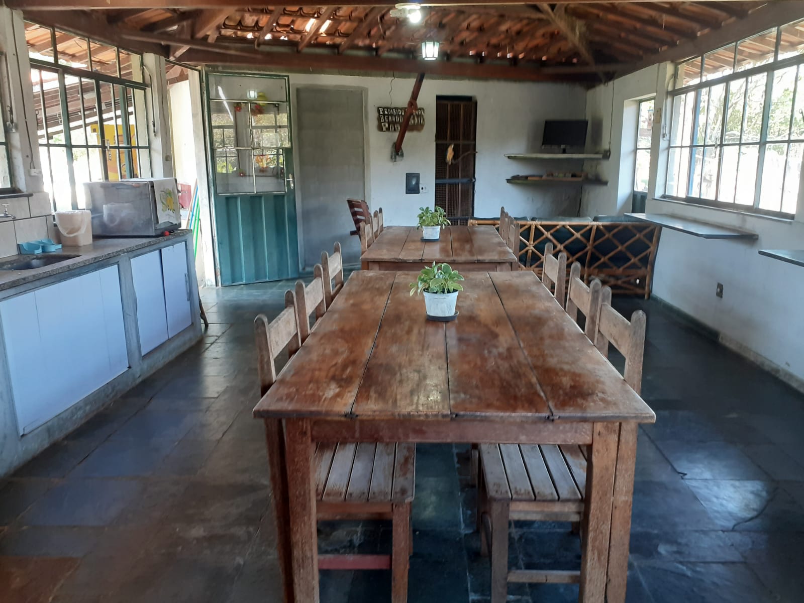 Par até 25 pessoas, quartos suítes, cozinha ampla, área gourmet com churrasqueira, danceteria,quadra ,piscina adulto e infantil, rio, acesso asfalto e calçamento.