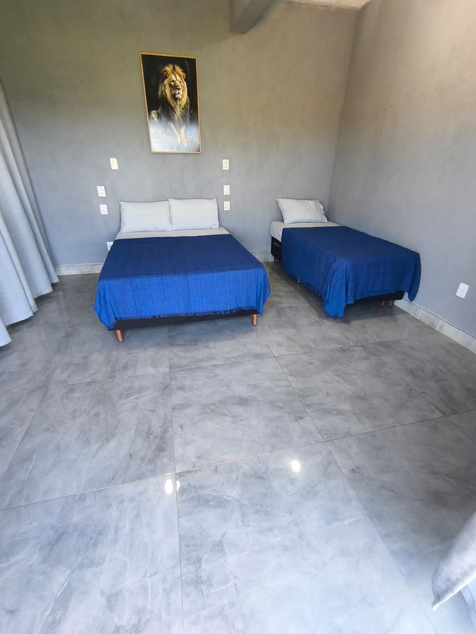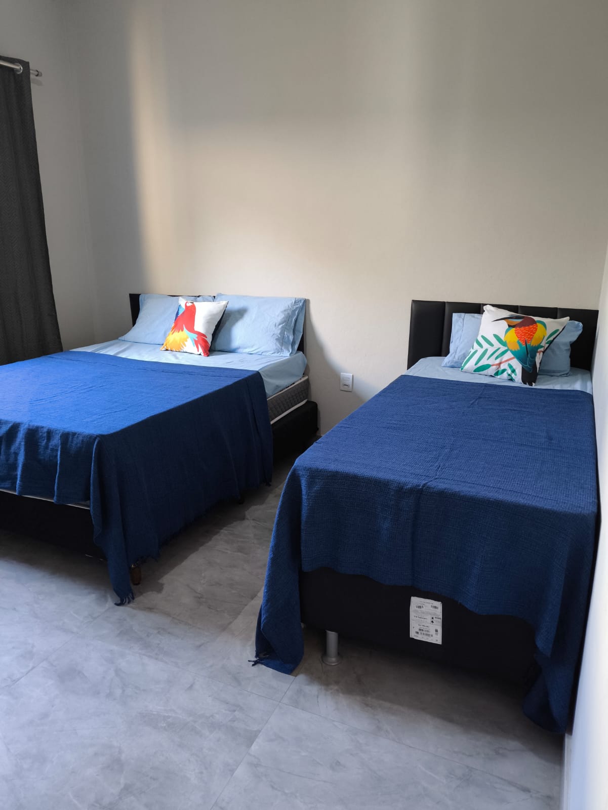 🛏️ 1 Suíte externa bem espaçosa com cama casal, cama solteiro com auxiliar, ventilador de teto e BANHEIRO.