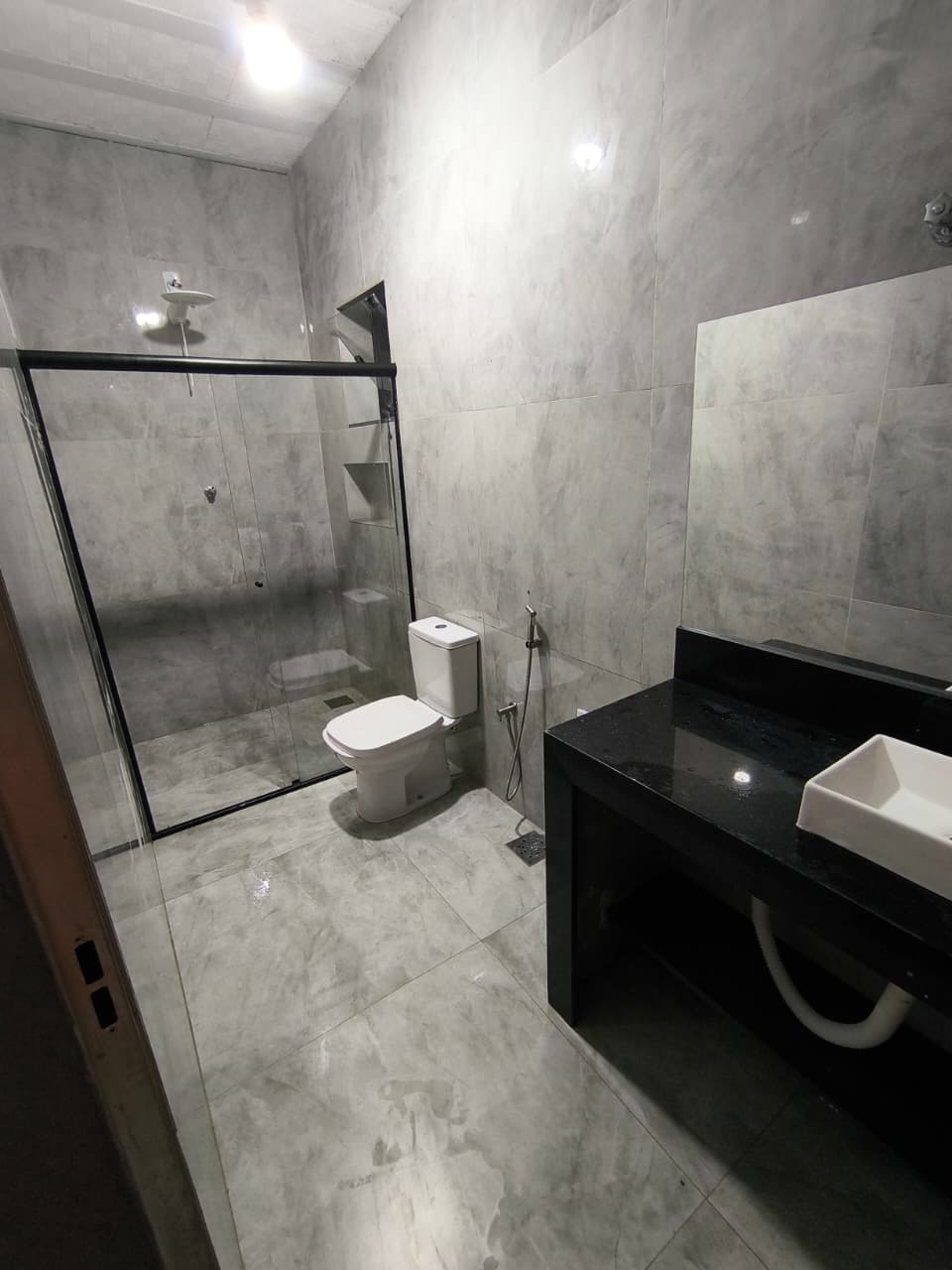 🚿 1 banheiro moderno, todo em porcelanato dentro da casa principal.