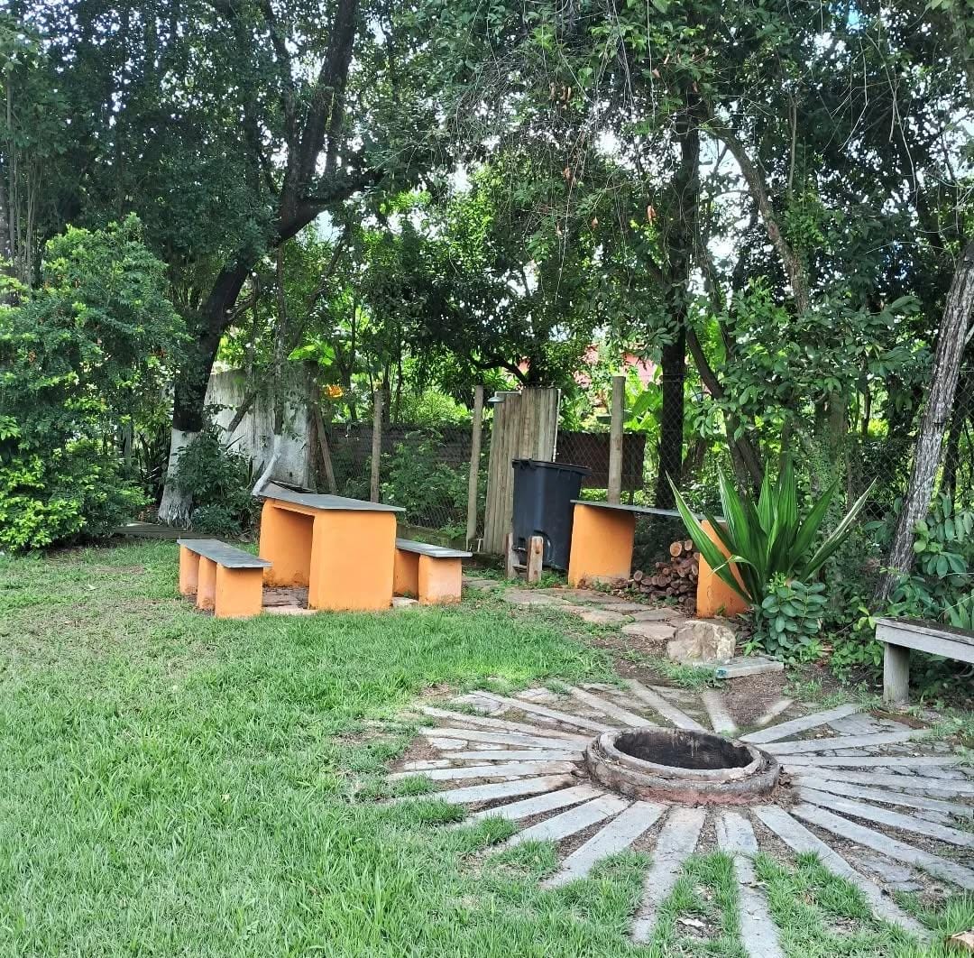 ÁREAPISCINA: Uma piscina grande com iluminação,uma churrasqueira grande,freezer,dois banheiros,sauna a gás, ducha,um campinho de futebol,um parquinho,uma ducha,um espaço para fogo no chão ( tipo luau ), um pequeno pomar,espaço para uns 10 carros.