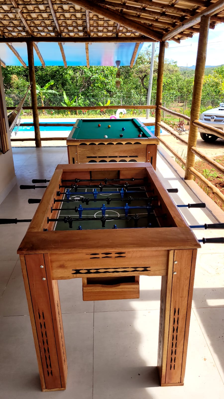 Rede , sinuca , mesa de Ping pong, peteca , balanço