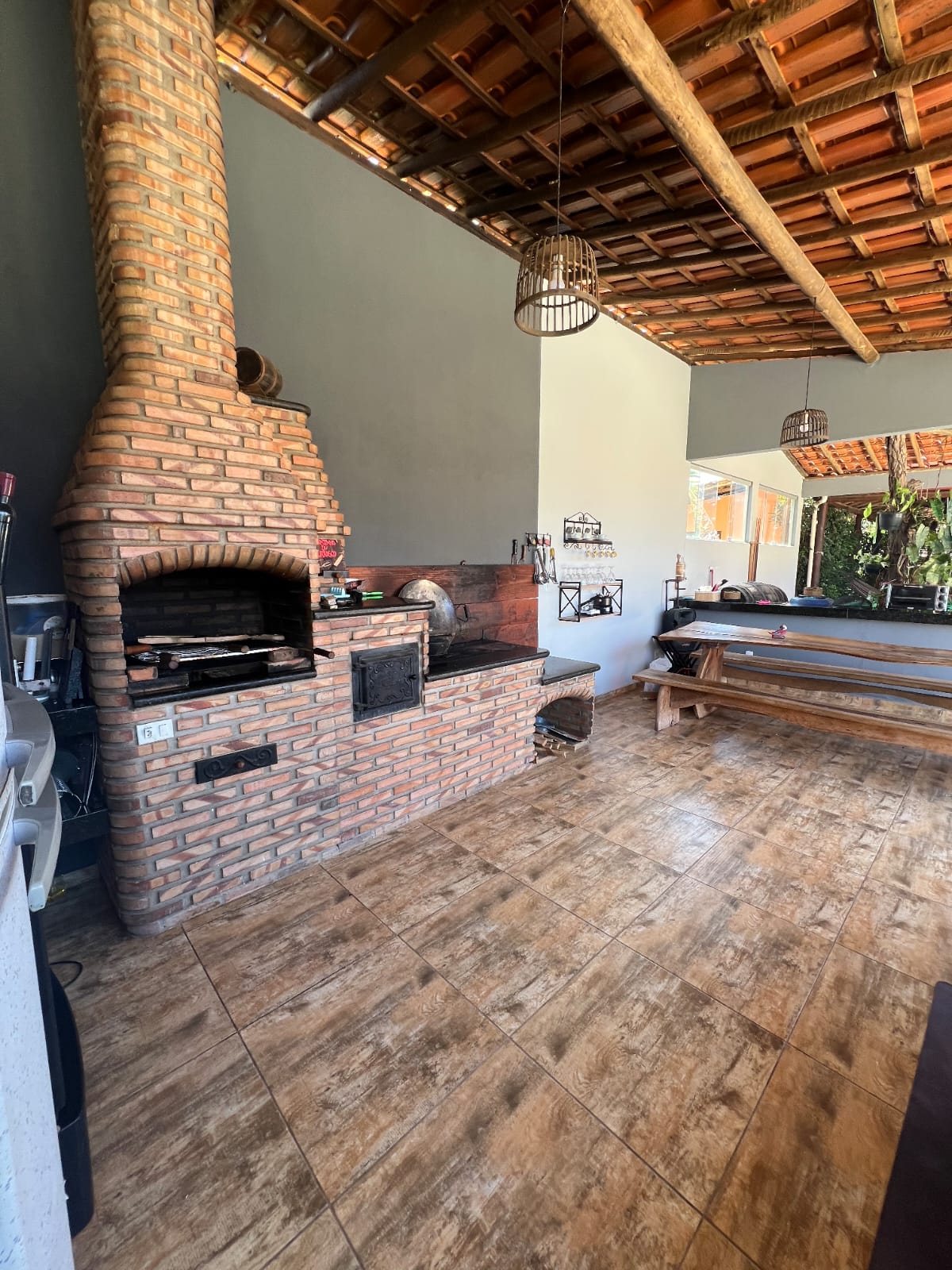 Cozinha gourmet totalmente equipada, fogão a lenha , churrasqueira, Cook top, geladeira , utensílios completos, mesa espaçosa